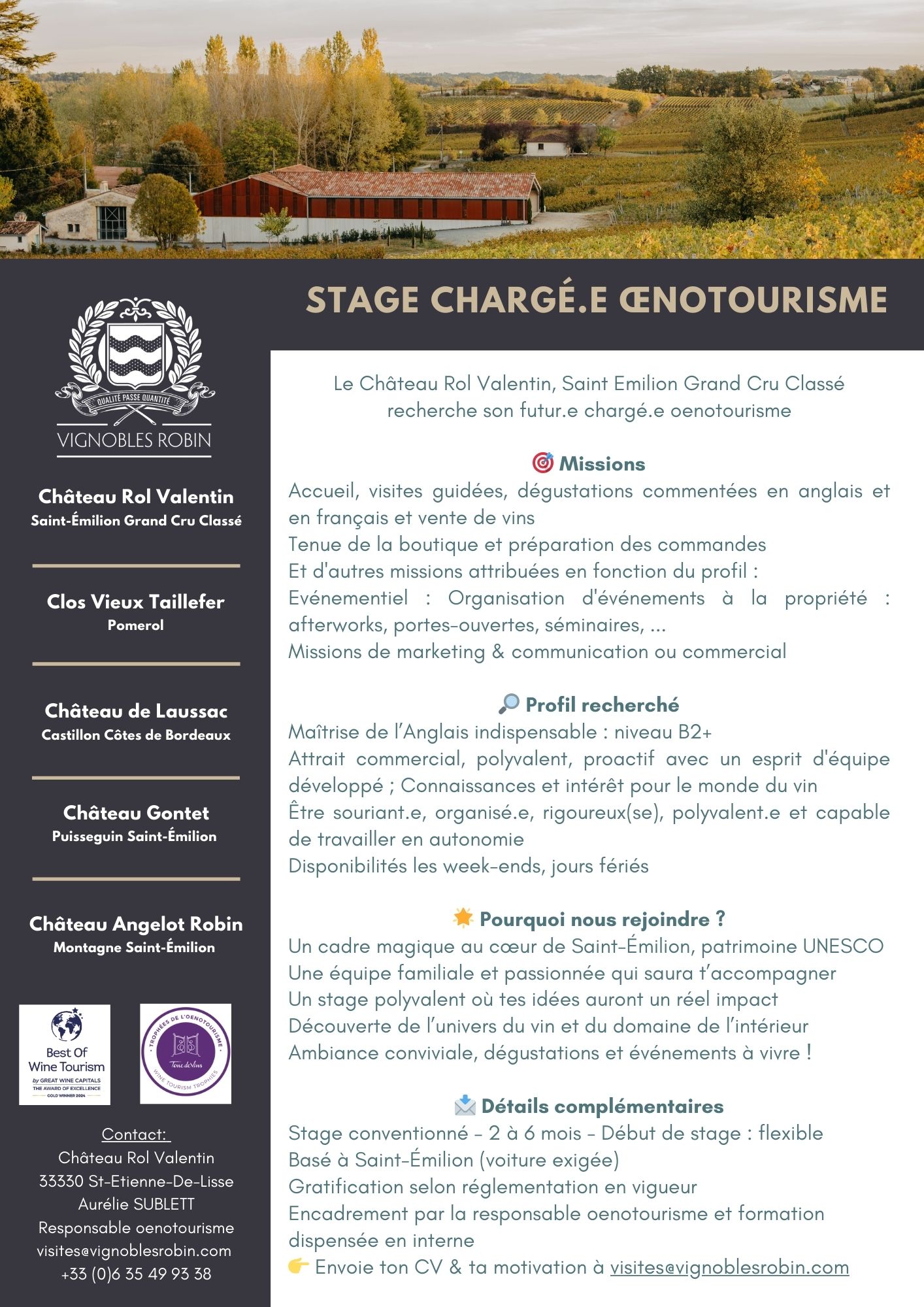 Offre de Stage 2026 - LA CROIZILLE SAINT EMILION GRAND CRU CLASSE