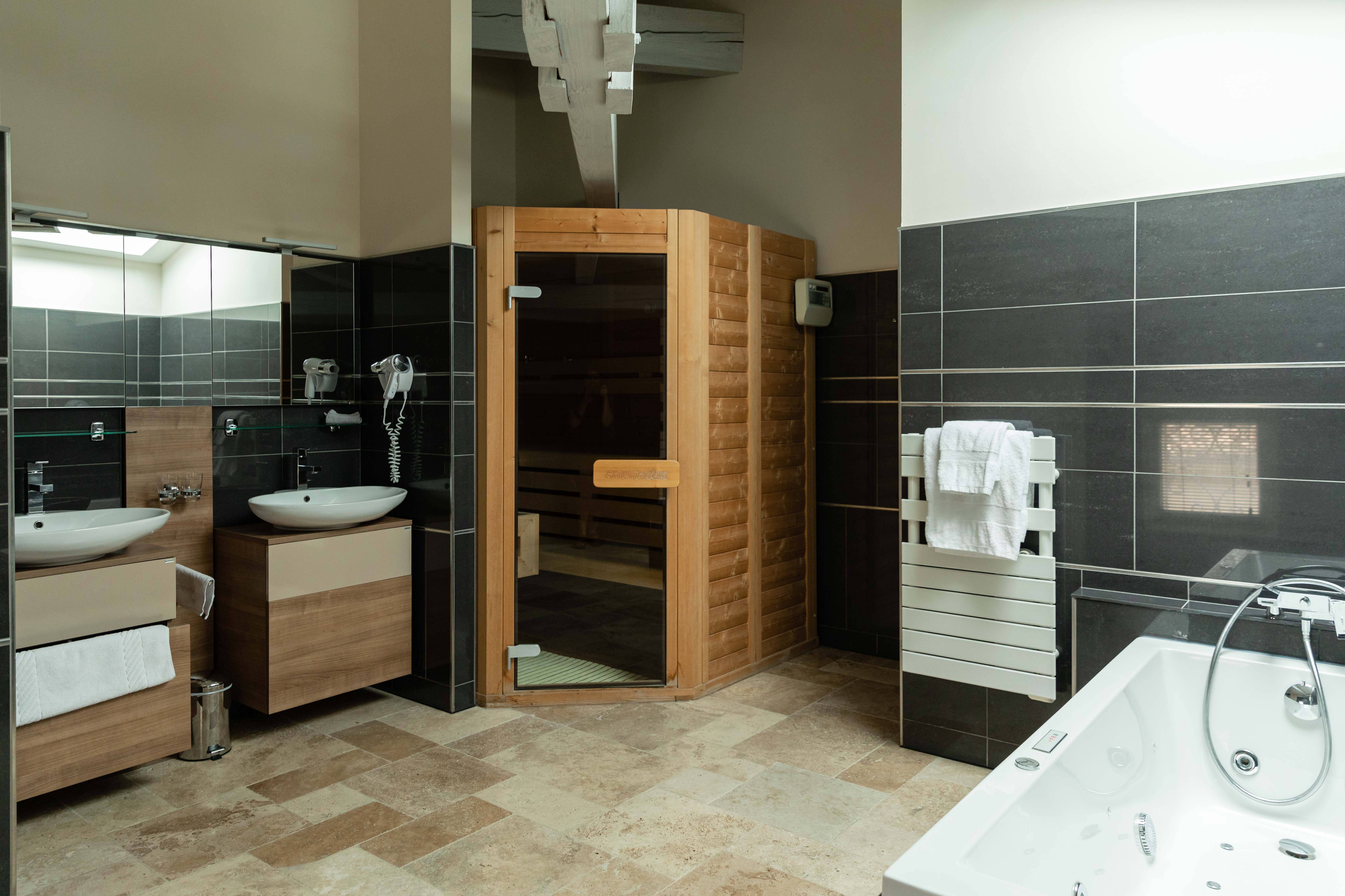 Alle Zimmer sind klimatisiert und verfügen über Parkettböden und Holzmöbel. Sie sind mit einer Minibar und einem Safe ausgestattet. Ihre eigenen Badezimmer sind mit Toilettenartikeln und Bademänteln ausgestattet. Einige bieten zudem eine Whirlpool-Badewanne und eine private Sauna oder Einrichtungen für Gäste mit eingeschränkter Mobilität. Jeden Morgen wird ein kontinentales Frühstück angeboten. Sie können auf der Terrasse entspannen oder einen Spaziergang im Garten machen.