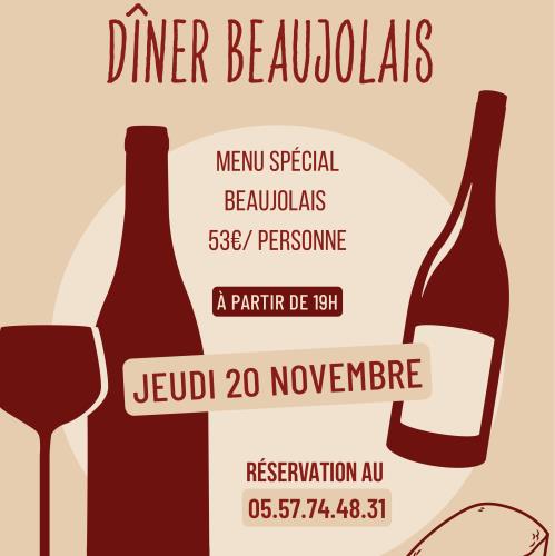 Un dîner complet (entrée, plat, fromage, dessert) imaginé pour sublimer les saveurs du Beaujolais, servi dans l’ambiance chaleureuse et authentique du restaurant.