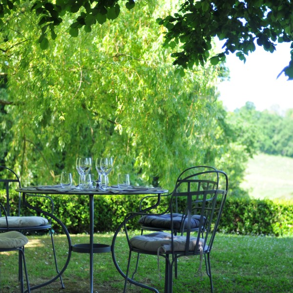 Déjate guiar mientras disfrutas de la cálida atmósfera de nuestras salas o de nuestra terraza sombreada frente al paisaje ondulado y los viñedos.