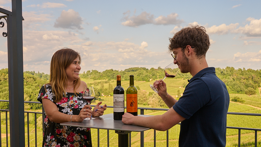 Relájese en nuestra terraza panorámica, rodeada de los viñedos de Saint-Émilion. Disfrute de vinos de Burdeos, especialidades locales, así como de una selección de vinos de otras regiones, cervezas artesanales, cócteles y zumos frescos.