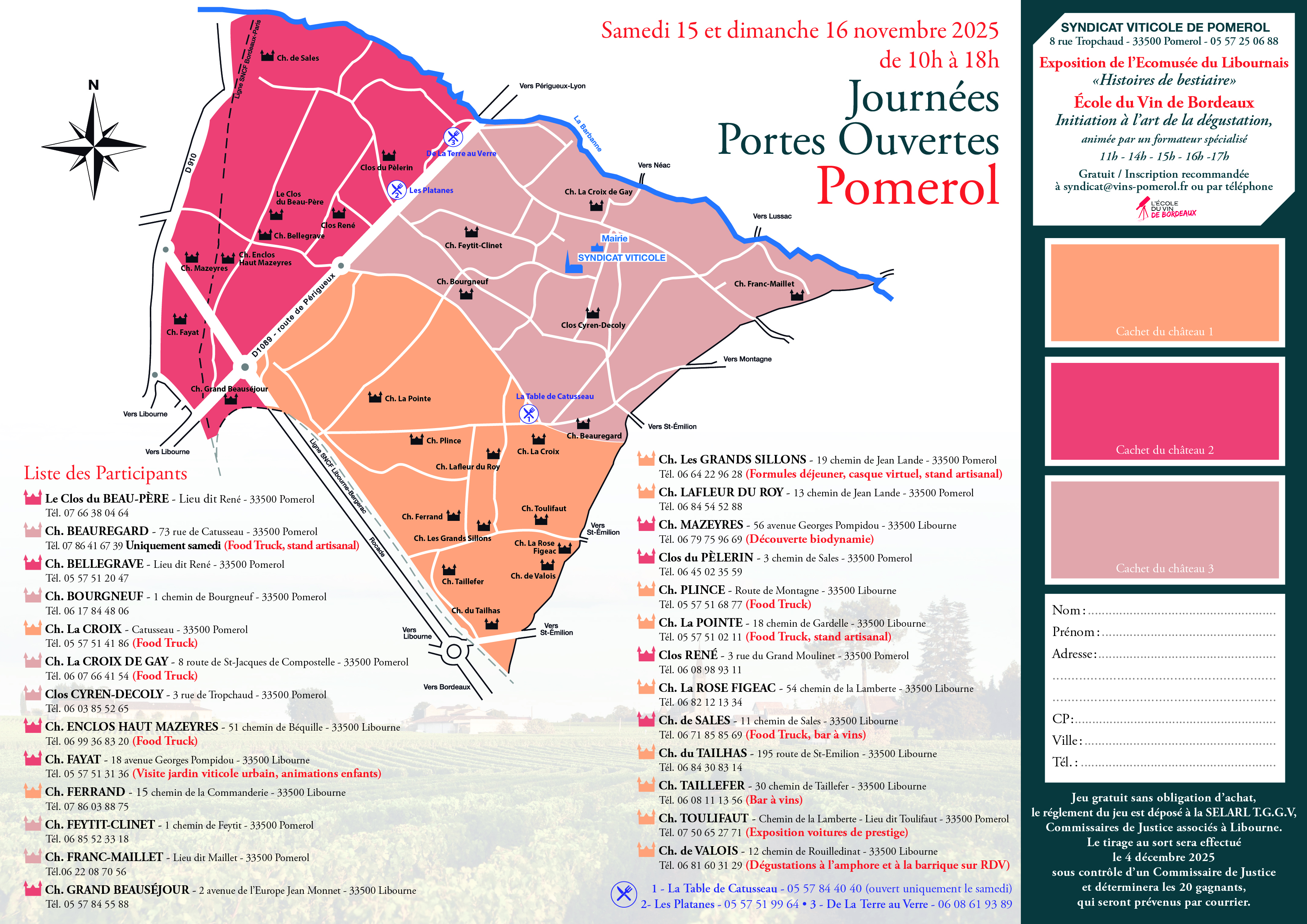 Au programme, une vingtaine de Château vous ouvre leurs portes. Vous y retrouverez des dégustations, des foodtrucks, des expositions et pleins d'autres surprises comme un jeu concours par exemple.