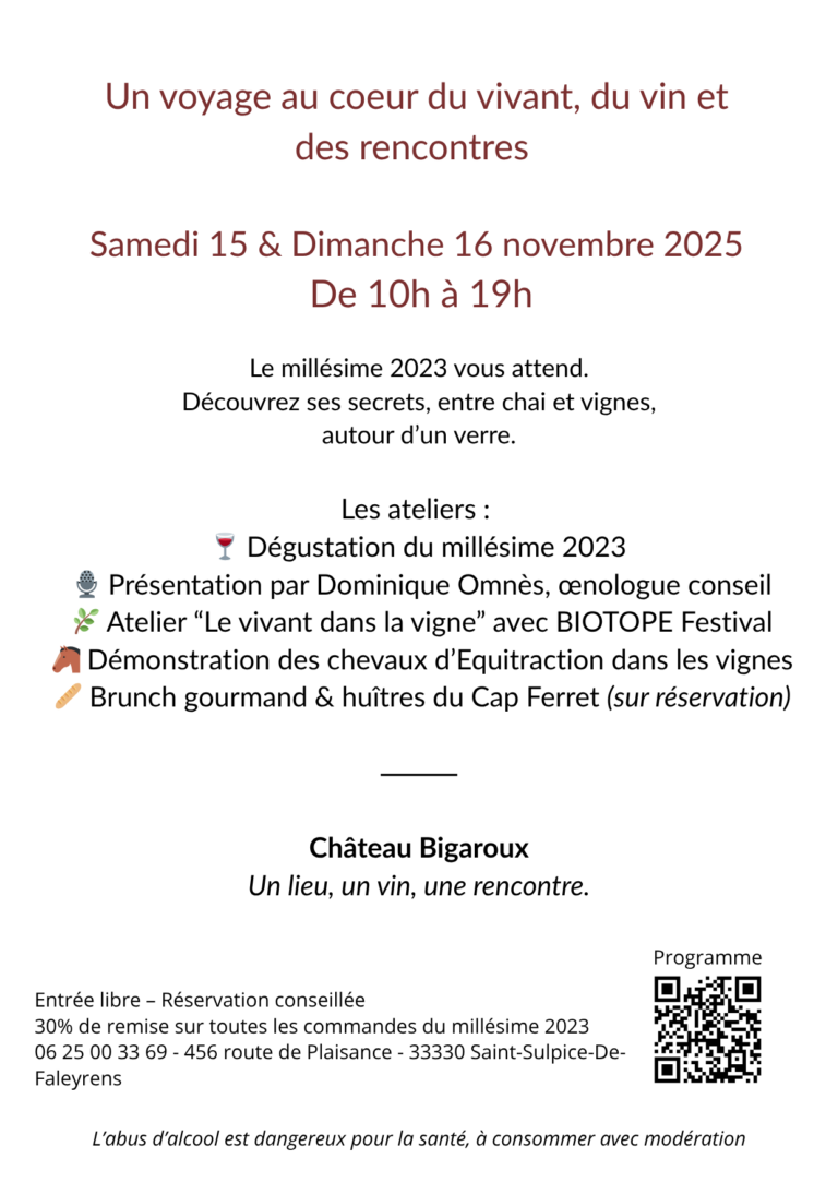• Atelier “Le vivant dans la vigne” animé par l’association BIOTOPE Festival (sur vos conseils)