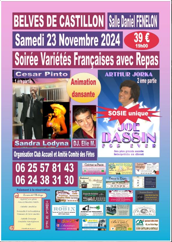 Soirée variétés françaises avec repas à partir de 19h.