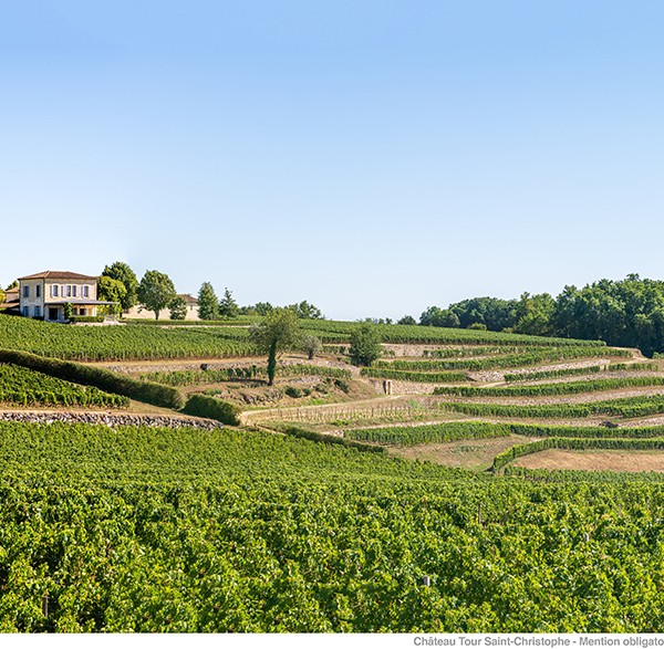 Château Tour Saint Christophe se situe sur la commune de Saint Christophe des Bardes à la limite de Saint Emilion. Le vignoble présente une particularité exceptionnelle à Saint-Emilion: il est en partie planté sur d’étroites terrasses aménagées où la vigne est jardinée en rangs serrés. Ce paysage en cascade se déploie sur le coteau de Cassevert, dominant la combe de Saint Laurent.