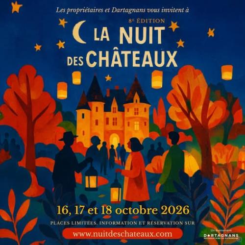 On 16, 17 & 18 October 2025, throughout France and Europe, we invite you to join us for an unforgettable night-time experience: nearly a hundred castles will simultaneously open their doors to offer you an extraordinary adventure.