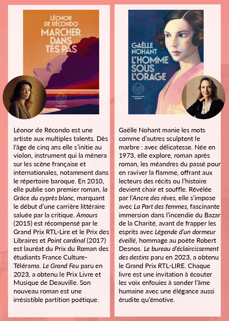 Ce sera l'occasion de plonger au cœur des ouvrages Marcher dans tes pas de Léonor de Récondo et L'homme sous l'orage de Gaëlle Nohant, qui mettent en lumière des personnages affrontant le poids de l'héritage de ceux qui les ont précédés.