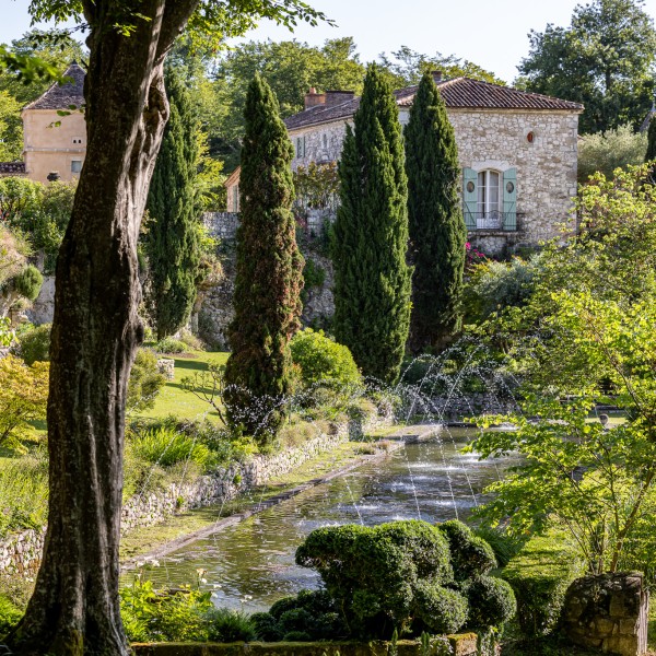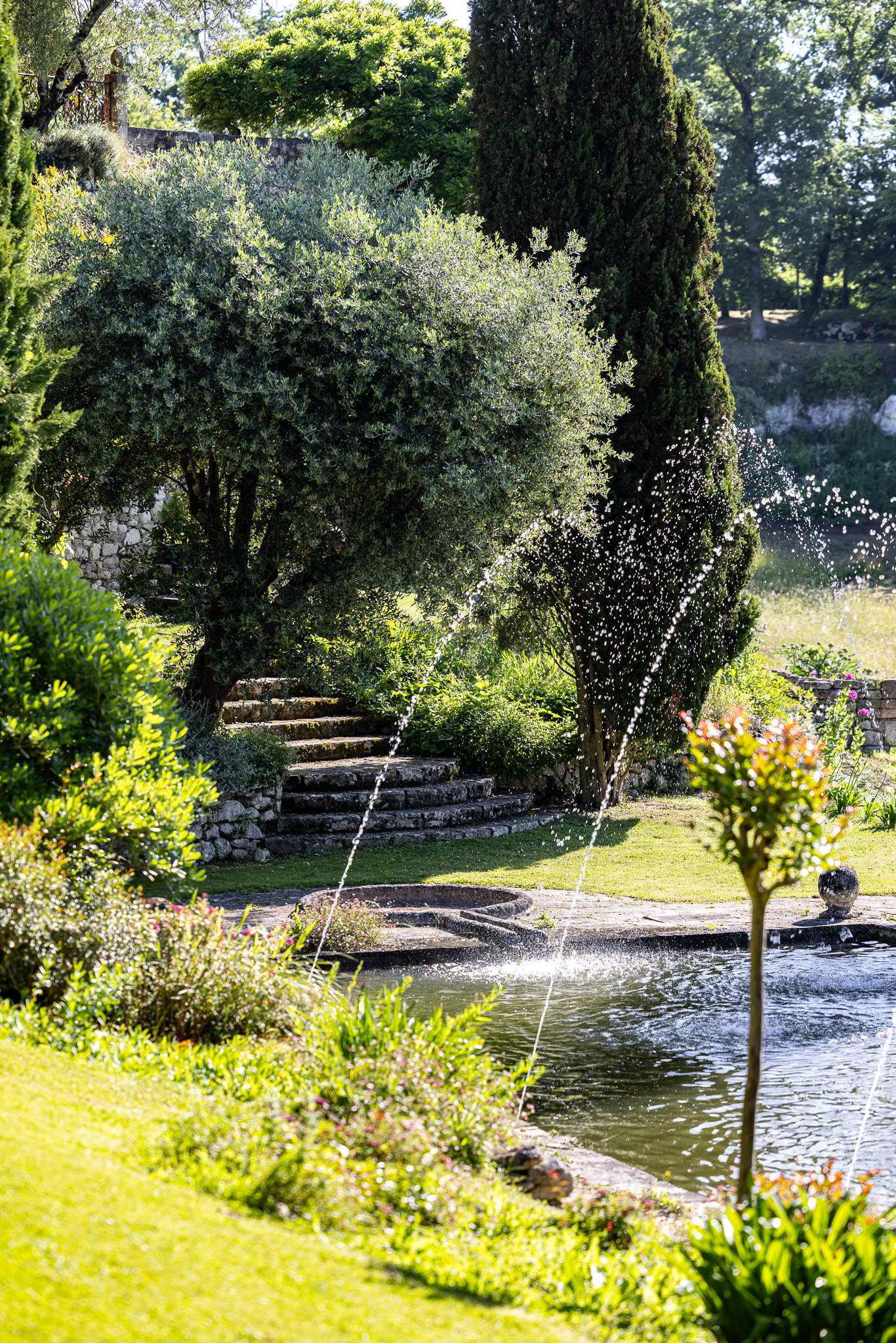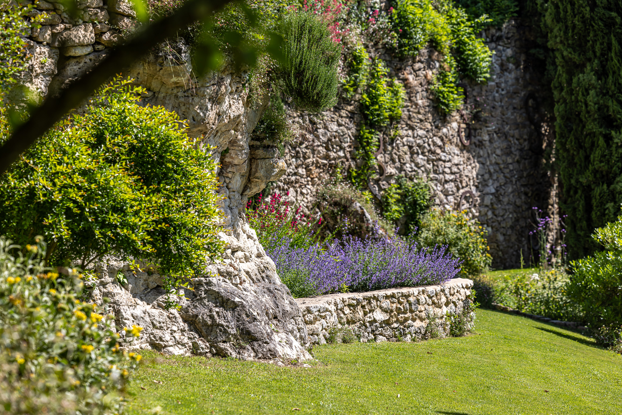 Ze zijn in de 20e eeuw gerestaureerd en combineren op elegante wijze de minerale en plantaardige elementen die kenmerkend zijn voor deze plek. Het perspectief van het lange zwembad omringd door hagen en cipressen doet denken aan Toscane. De gemengde borders met pastelkleurige bloemen hebben de charme van tuinen aan de overkant van het Kanaal.