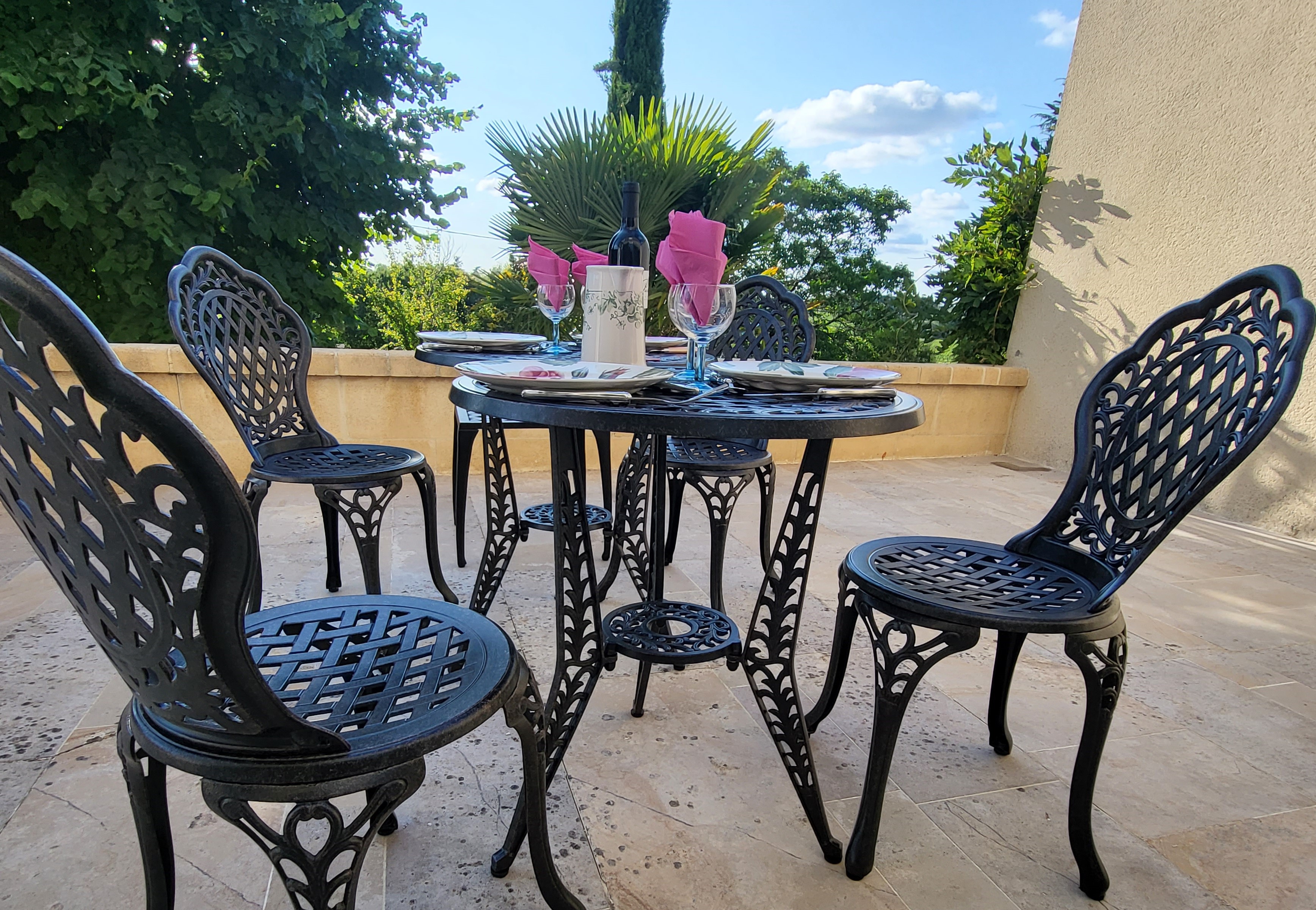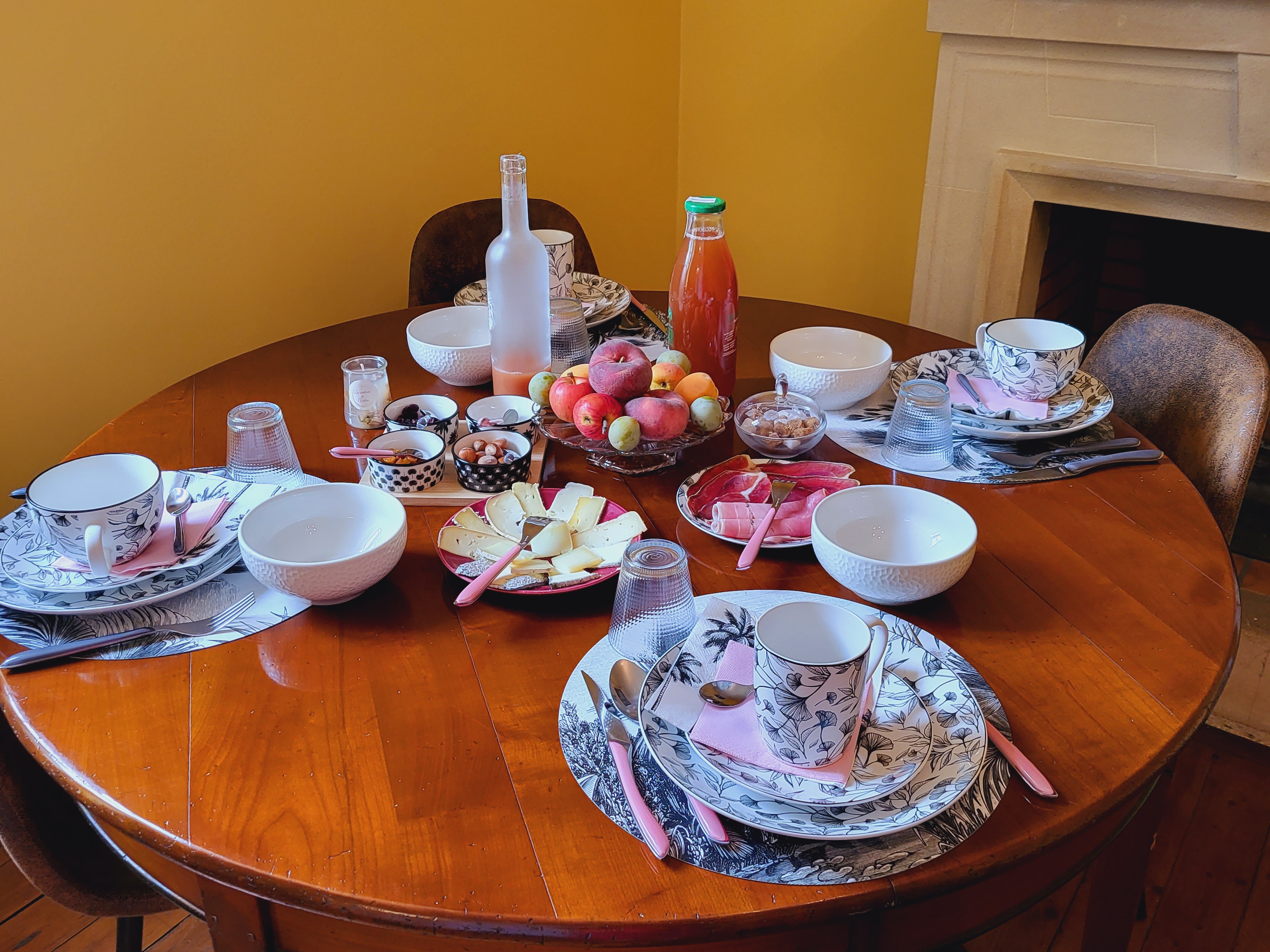 La colazione viene servita sulla terrazza in pietra con vista sul villaggio di Lussac nella bella stagione, oppure nella sala colazioni al piano terra. Potrete gustare le nostre marmellate e crostate fatte in casa, la frutta di stagione del frutteto e, se preferite qualcosa di salato, formaggi e prosciutti del Sud-Ovest.