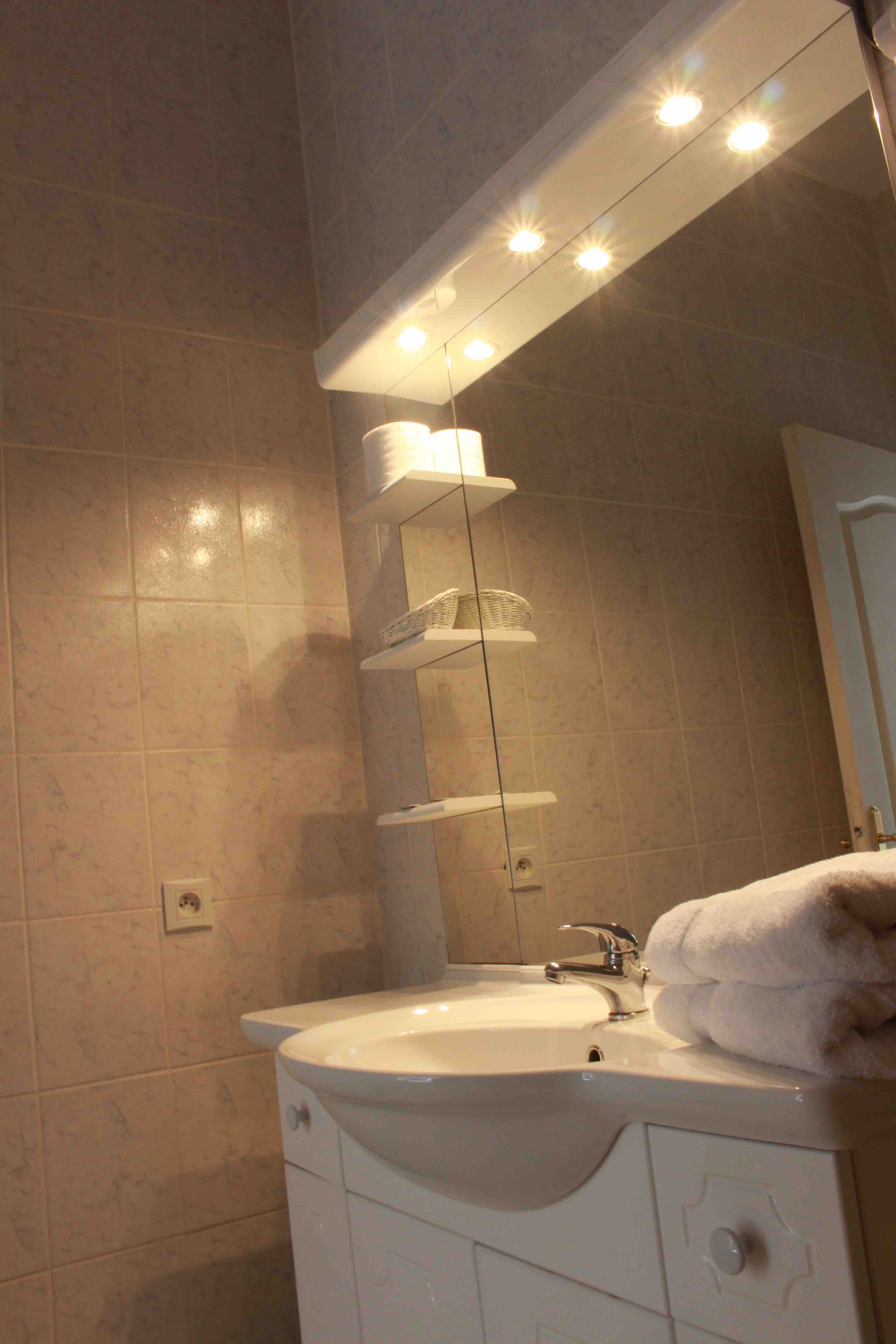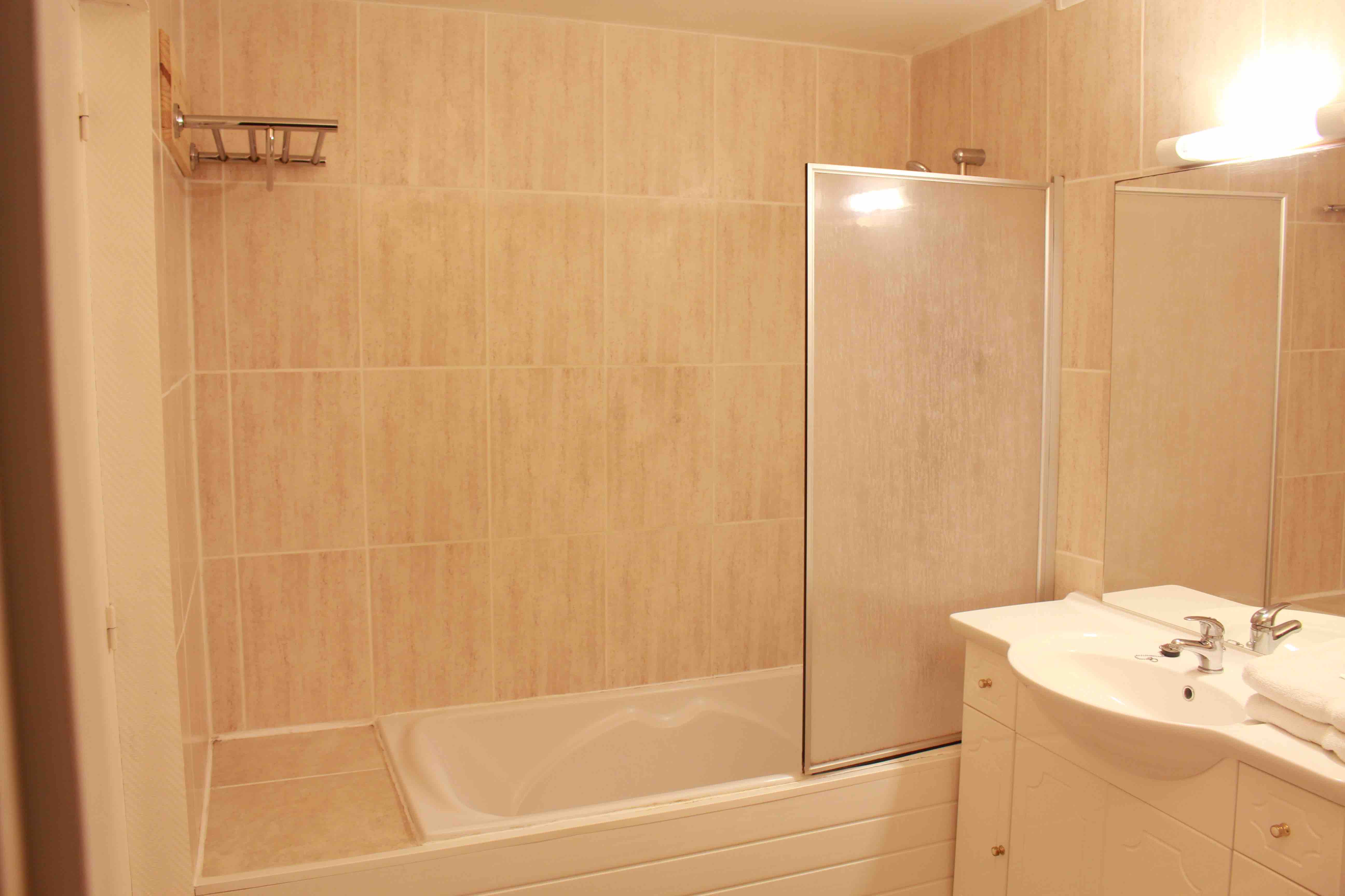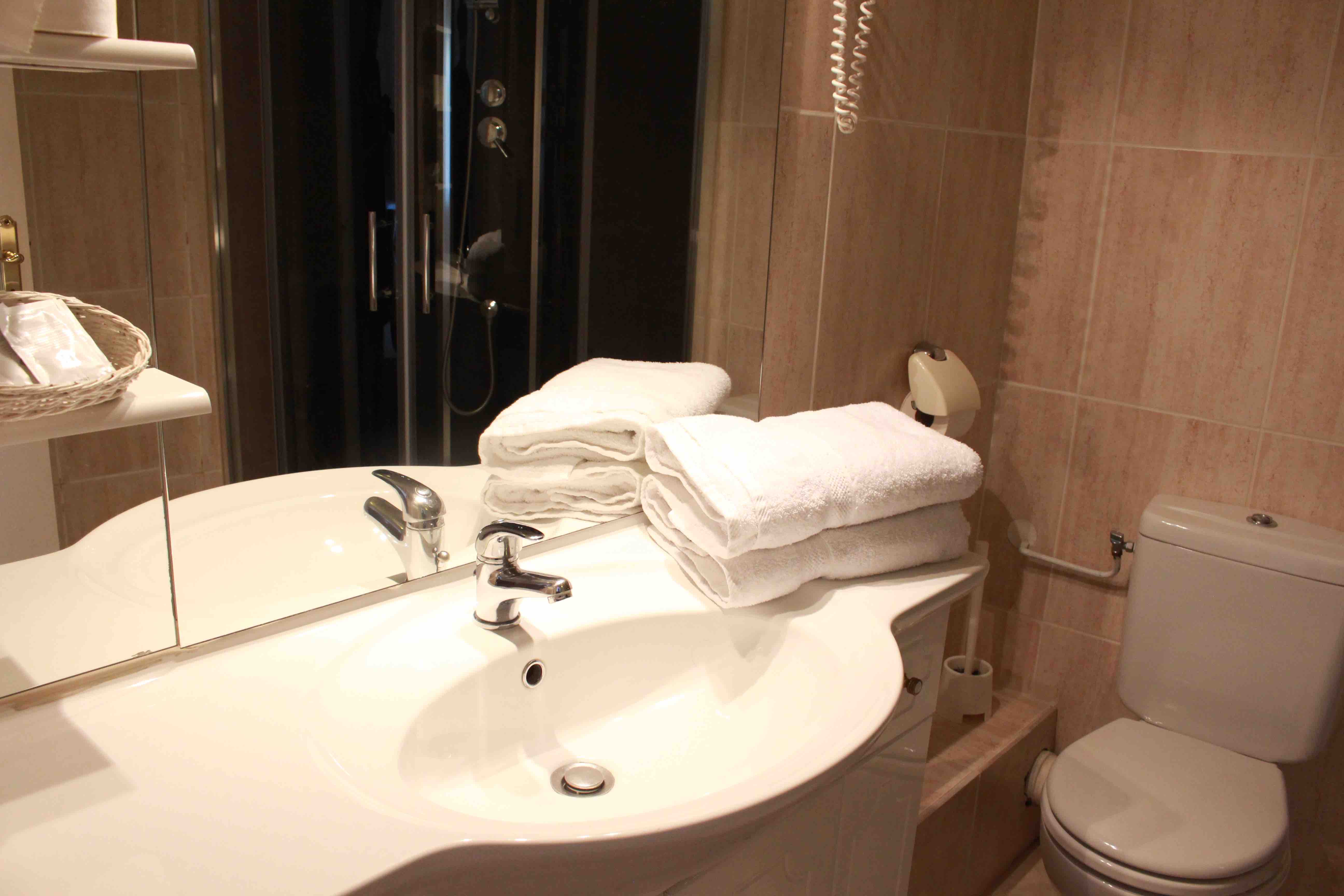 Ogni camera ha il proprio bagno con doccia e WC.