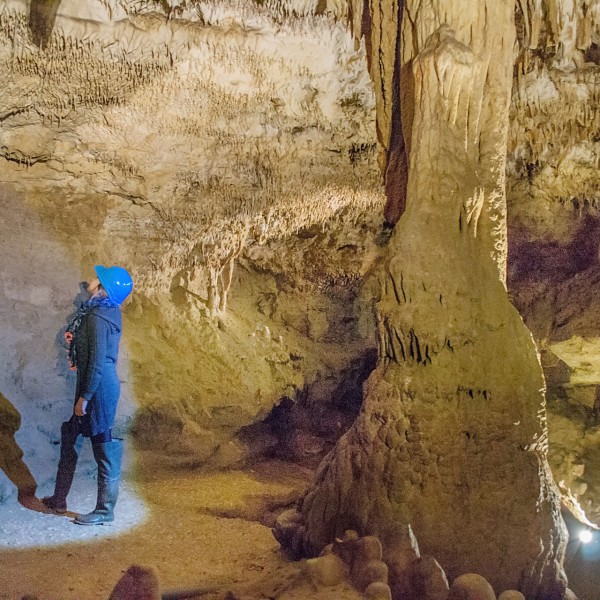 長靴とヘルメットを着用して、洞窟探検スタイルでセレスティーヌ洞窟を訪れよう!