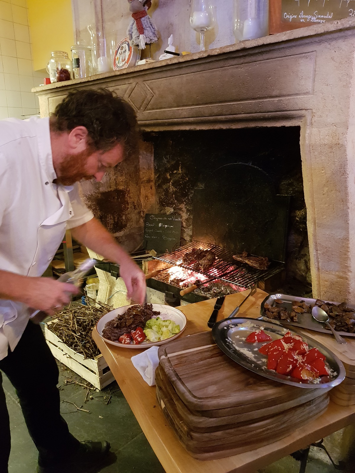 かな雰囲気、オープンキッチン、ブドウの木の芽を焼くための大きな暖炉。