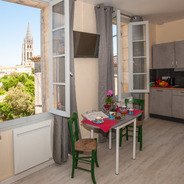 We verwelkomen je in de voormalige school van de Ursulinen. Uitzicht op de monolithische kerk en de kloostergang Cordeliers. Perfect voor een romantische zonsondergang bij een glas wijn.