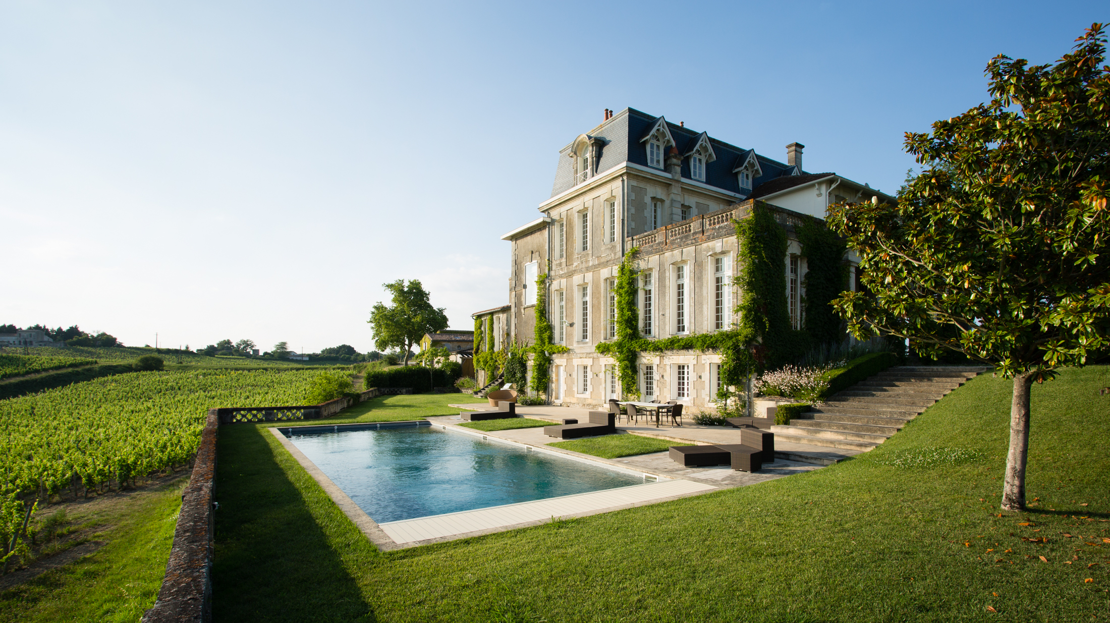 Aninhado numa encosta no coração dadenominação Canon-Fronsac, com vista para um meandro na Dordogne, o Château Gaby é como uma joia numa caixa de jóias. Este elegante edifício do século XVIII, outrora posto dos correios de Fronsac, goza de uma vista panorâmica excecional.