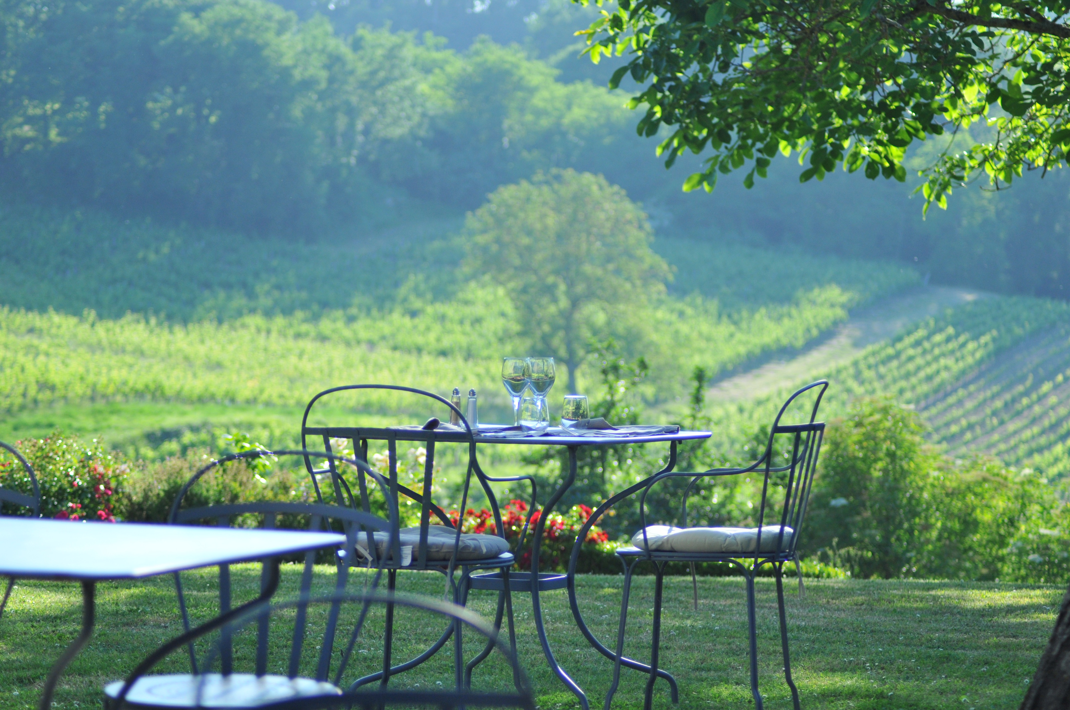 Ресторан Le Clos Mirande с видом на виноградники Монтань-Сен-Эмильон приглашает вас в поэтическую и буколическую обстановку.