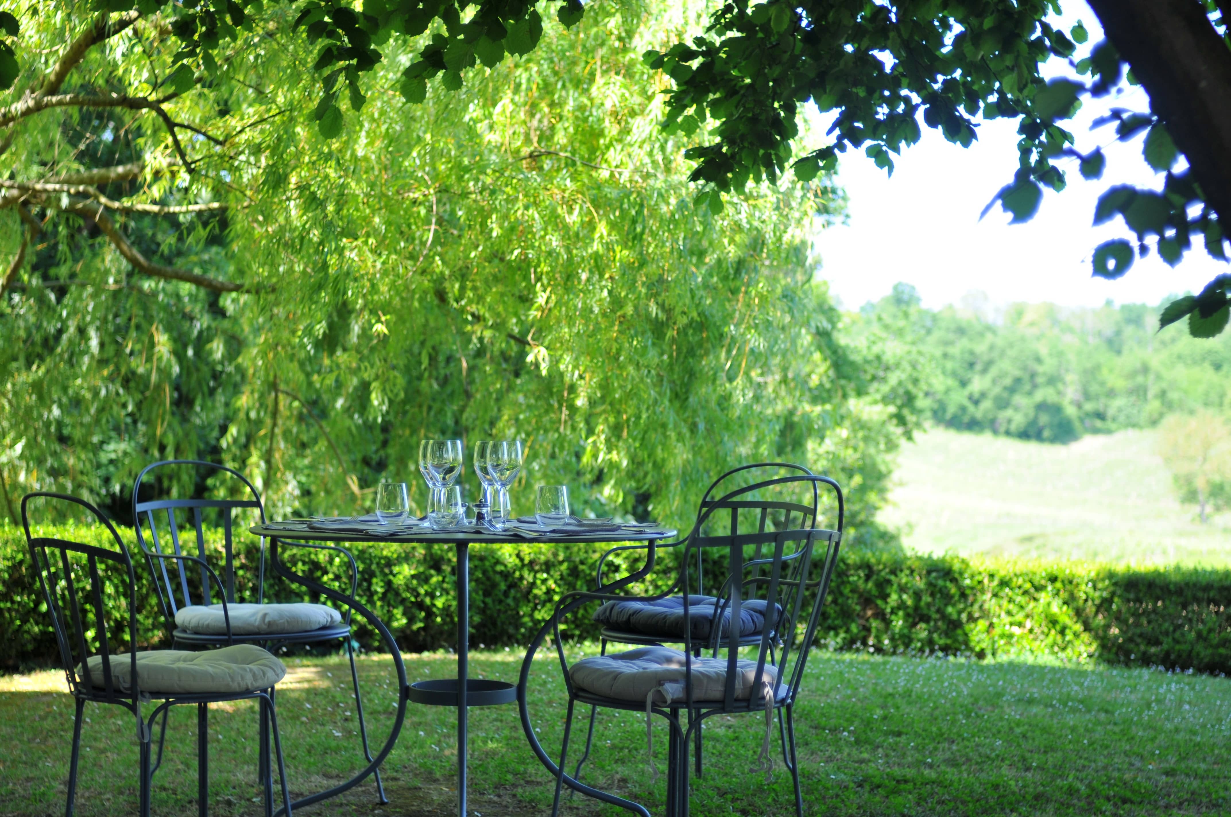 Насладитесьтеплой атмосферой наших обеденных залов или тенистой террасы с видом на сельскую местность и виноградники.