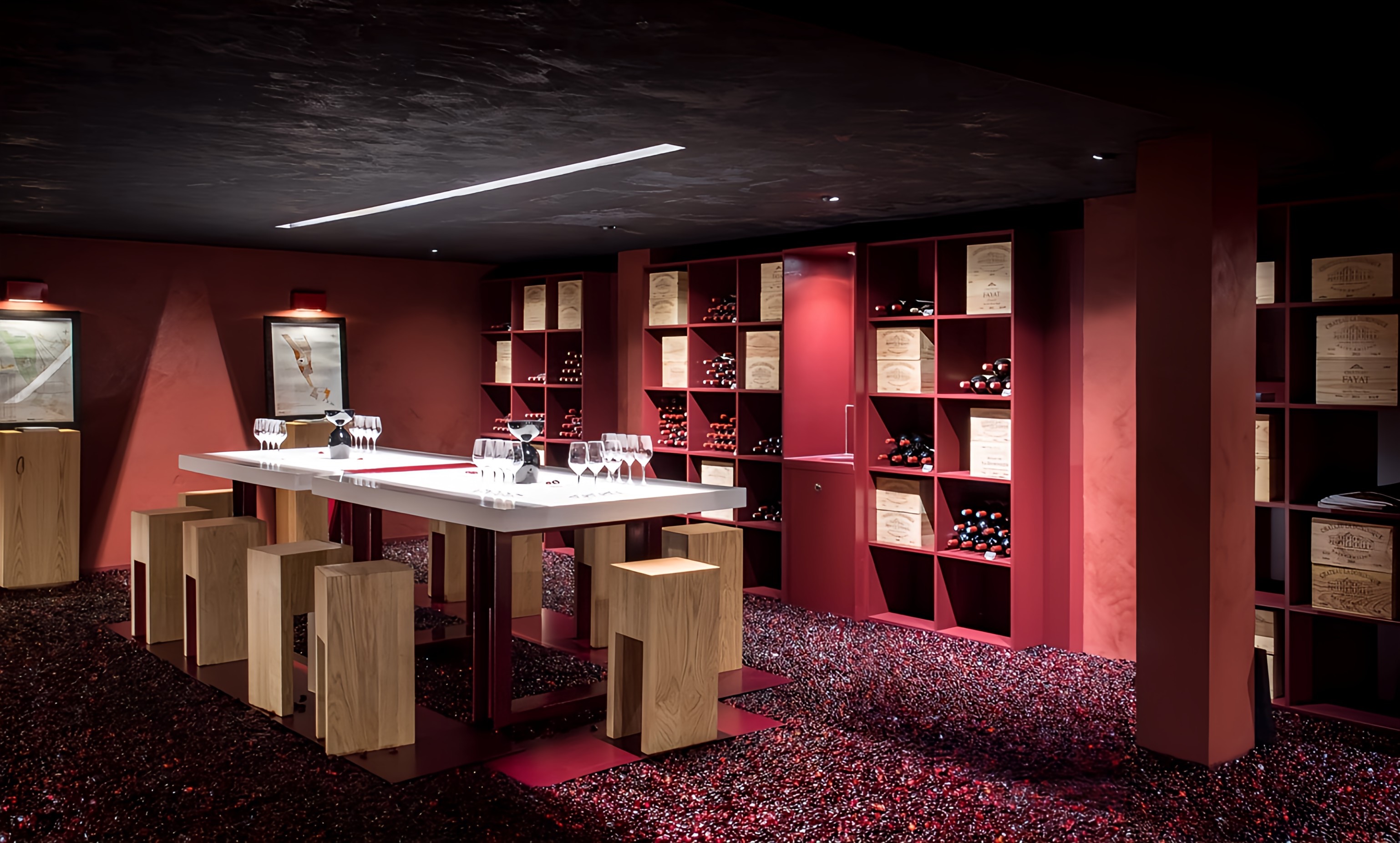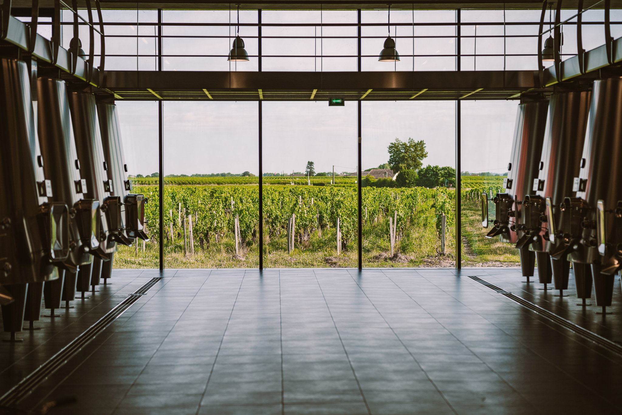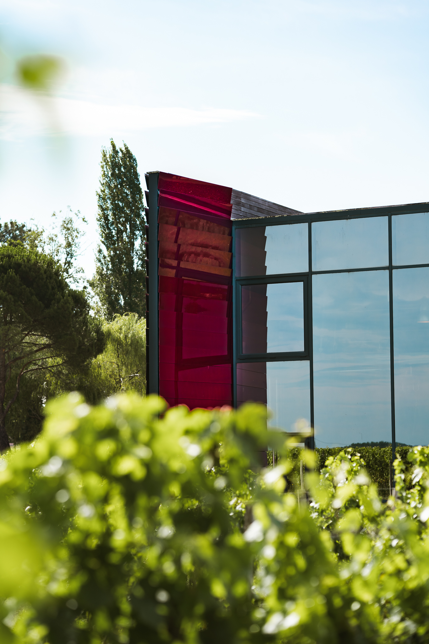 Château La Dominique приглашает вас круглый год в свою современную винодельню, спроектированную архитектором Жаном Нувелем.